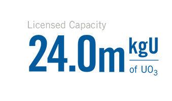 | Licensed capacity | 18.0 million kgU as UO3 per year, approved to 24.0 million subject to completion of certain equipment upgrades (advancement depends on market conditions) |
