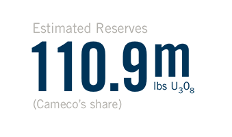 | Estimated reserves | 110.9 million pounds (proven and probable), average grade U3O8: 16.70% |