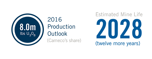 In 2016, we expect to produce 16.0 million packaged pounds at Cigar Lake; our share is 8.0 million pounds.