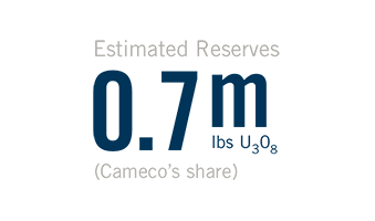 | Estimated reserves | 0.7 million pounds (proven), average grade U3O8: 0.08% |