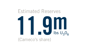 | Estimated reserves | 11.9 million pounds (proven and probable), average grade U3O8: 0.59% |