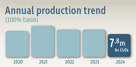 JV Inkai is targeting 2025 production of 8.3 million pounds (100% basis) of which our purchase allocation is expected to be 3.7 million pounds. The temporary suspension in early 2025 did not have a material impact on JV Inkai’s 2025 outlook. The achievement of JV Inkai’s 2025 production target requires it to successfully manage several ongoing risks, including the availability of sulfuric acid, other procurement and supply chain issues, transportation challenges, construction delays and inflationary pressures on its production costs.Due to equity accounting, our share of production is shown as a purchase at a 5% discount to the spot price and included in inventory at this value at the time of delivery. The first shipment from JV Inkai containing our remaining share of 2024 production (approximately 900,000 pounds) and approximately 2.0 million pounds of our share of Inkai’s 2025 production is currently in transit and expected to arrive at the Blind River refinery in early November. The majority of our remaining share of 2025 production from JV Inkai is expected to be delivered before the end of 2025. Our share of the profits earned by JV Inkai on the sale of its production to the joint venture partners is included in “share of earnings from equity-accounted investee” on our consolidated statement of earnings. Excess cash, net of working capital requirements, is distributed to the partners as dividends once declared.