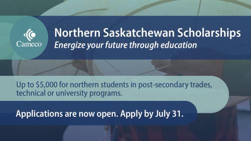The Cameco Northern Saskatchewan Scholarship recognizes and supports students who are residents of Saskatchewan’s North (RSN) in their pursuit of post-secondary education.