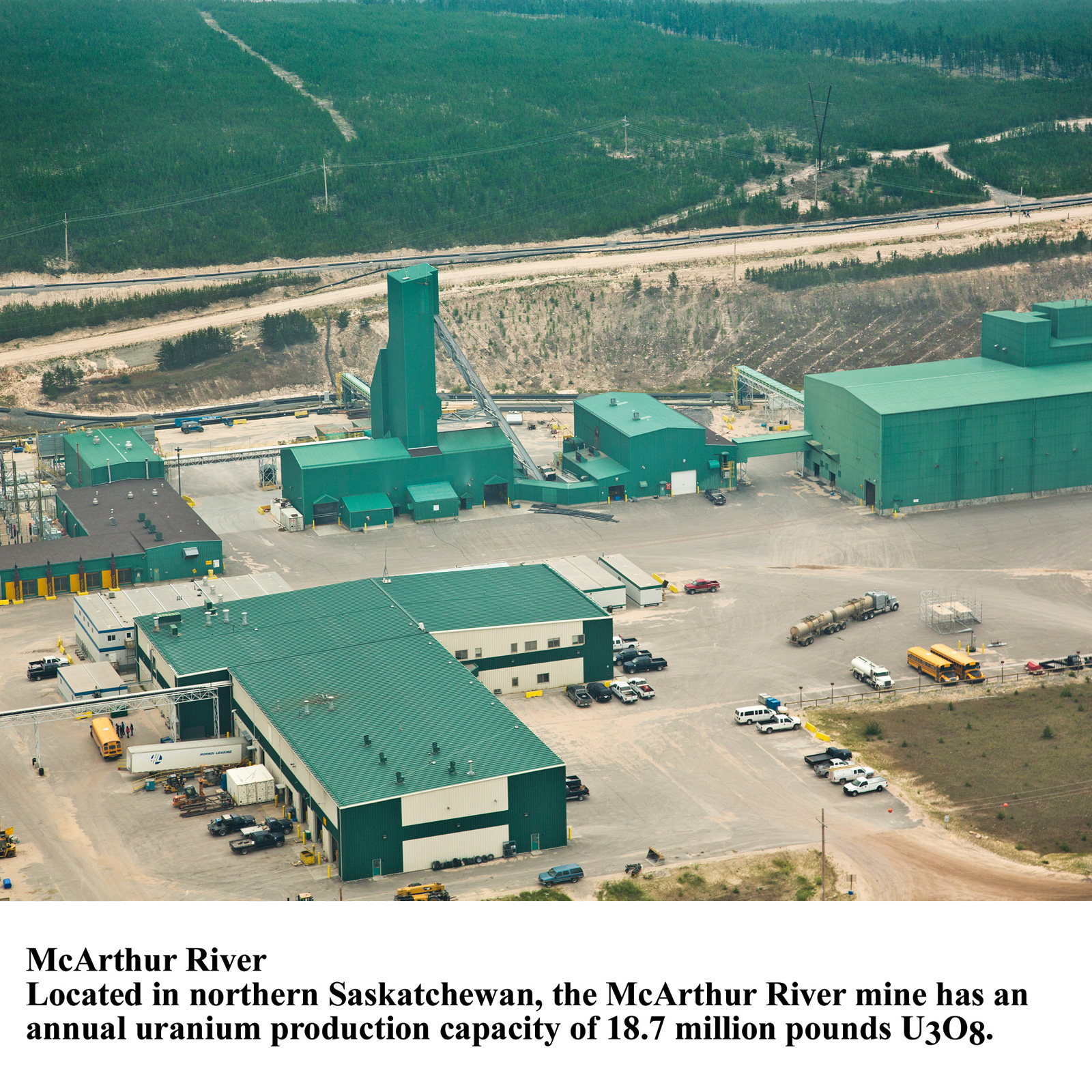 McArthur RiverLocated in northern Saskatchewan, the McArthur River mine has an annual uranium capacity of 18.7 million pounds of U3O8. Please select file type: Print Web Download