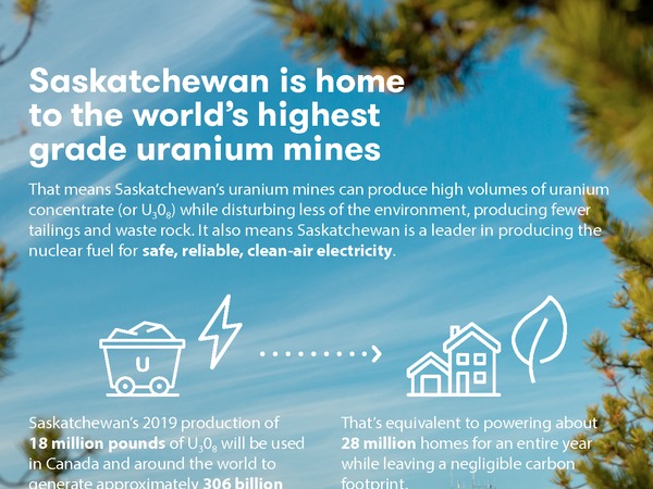 Uranium Overview Properties Radiation Finding Uranium Regulators Markets Uranium in Saskatchewan Nuclear History Timeline Nuclear Fuel Cycle Mining & Milling Establishing a Mine Mining Milling After Mining More Topics Safety Environment Cameco's Role Markets Types of Careers Learn More Fuel Processing Refining & Conversion Enrichment Fuel Manufacturing More Topics Safety Environment Cameco's Role Markets Types of Careers Learn More Electricity Generation How Reactors Work Types of Reactors Nuclear Power Advantage Energy Demands More Topics Safety Environment Cameco's Role Markets Types of Careers Learn More Spent Fuel Management Spent Fuel Reprocessing Long-Term Storage More Topics Safety Environment Cameco's Role Learn More Menu Search Media Library Images Uranimum Overview Download Uranium Overview Download Uranium Overview Download Uranium Overview Download Uranium Overview Download Uranium Overview Download Uranium Overview Download Uranium Overview Download Mining & Milling Download Mining & Milling Download Mining & Milling Download Mining & Milling Download See 12 More Images See All Images Videos Cameco Fuel Cycle - Introduction × Cameco Fuel Cycle - Introduction Cameco Fuel Cycle - Introduction Cameco Fuel Cycle - Exploration × Cameco Fuel Cycle - Exploration Cameco Fuel Cycle - Exploration Cameco Fuel Cycle - Raisebore Mining × Cameco Fuel Cycle - Raisebore Mining Cameco Fuel Cycle - Raisebore Mining Cameco Fuel Cycle - Jet Bore Mining × Cameco Fuel Cycle - Jet Bore Mining Cameco Fuel Cycle - Jet Bore Mining Cameco Fuel Cycle - In-Situ Recovery Mining × Cameco Fuel Cycle - In-Situ Recovery Mining Cameco Fuel Cycle - In-Situ Recovery Mining Cameco Fuel Cycle - Milling × Cameco Fuel Cycle - Milling Cameco Fuel Cycle - Milling Cameco Fuel Cycle - Refining × Cameco Fuel Cycle - Refining Cameco Fuel Cycle - Refining Cameco Fuel Cycle - Conversion × Cameco Fuel Cycle - Conversion Cameco Fuel Cycle - Conversion Cameco Fuel Cycle - Fuel Manufacturing: Light Water Cycle × Cameco Fuel Cycle - Fuel Manufacturing: Light Water Cycle Cameco Fuel Cycle - Fuel Manufacturing: Light Water Cycle Cameco Fuel Cycle - Electricity Generation × Cameco Fuel Cycle - Electricity Generation Cameco Fuel Cycle - Electricity Generation Cameco Fuel Cycle - Fuel Manufacturing: CANDU Cycle × Cameco Fuel Cycle - Fuel Manufacturing: CANDU Cycle Cameco Fuel Cycle - Fuel Manufacturing: CANDU Cycle Cameco McArthur River Virtual Tour × Cameco McArthur River Virtual Tour Cameco McArthur River Virtual Tour Cameco Key Lake Virtual Tour × Cameco Key Lake Virtual Tour Cameco Key Lake Virtual Tour Cameco Cigar Lake Mine Virtual Tour × Cameco Cigar Lake Mine Virtual Tour Cameco Cigar Lake Mine Virtual Tour Documents Uranium in Saskatchewan 2020 Fact Sheet Download Cameco Corporation - Comparison of Lifecycle Greenhouse Gas Emissions of Various Electricity Generation Sources Download × One ton of natural uranium can produce more than 40 million kilowatt-hours of electricity. This is equivalent to burning 16,000 tons of coal or 80,000 barrels of oil.