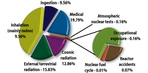 Radiation from the nuclear industry, including military testing and accidents, accounts for less than 1% of all radiation people are routinely exposed to. In fact, the nuclear fuel cycle accounts for only 0.01%.
